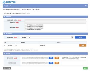 DIPSにログイン後、実績報告のメニューに行けば、必要記入事項(許可番号や氏名)が入力された状態で出てくる。