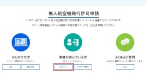 ⑥まずは登録機体情報の修正のため、一旦メニューまで戻り、一番上の「無人航空機情報の登録・変更」ボタンを押す