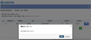 ⑮メニュー画面に戻り、「申請書一覧」ボタンを押す。
