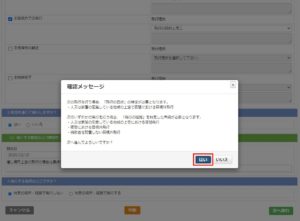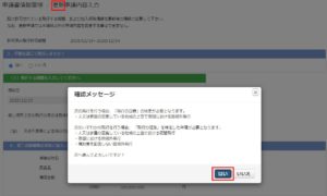 ここで、特に何のメッセージも出ず、更新申請ができる場合は⑭に進んで下さい。