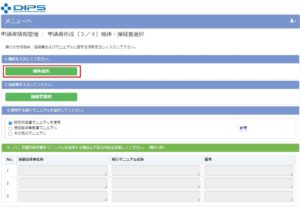 ⑧メニューに戻り、画面中央あたりの「申請書の作成(複製)」ボタンを押す
