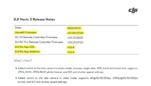 6月1日にyoutubeをなにげに見ていると、ドローン関連では有名なyoutuberさん達がMavic3の最新ファームウェアがアップされたと投稿していた。何っ!!ということで、早速DJI公式HPで確認したところ、2022-5-31のリリースノートが出ているではないですか!