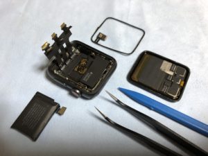 2017年10月にSeries3 Wi-fi+Cellularモデルを購入し、問題なく使用していた訳だが、ある日ふとウォッチを見ると画面が真っ暗。傾けても、振ったりしても変わらない。バッテリー切れかと思い、充電器に乗せると例の「チーン」の音。どうやら音は出るし充電もできるようだ。