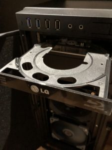 ファンには裏表があり、吸気なのか排気なのかを良く確かめる必要がある。前回自作した現在のメインPCにはBDドライブの取り付けができなかったので、今回それも取り付ける。早速、前面の5インチベイにセット。